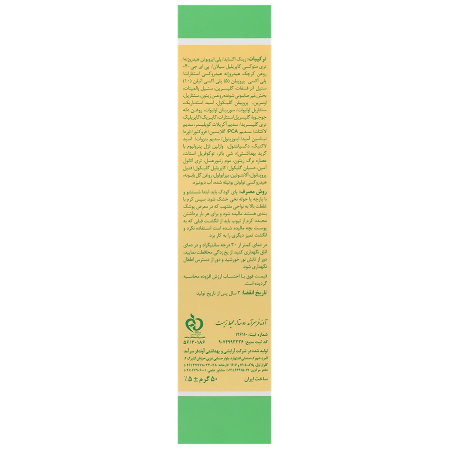 زینک اکساید: این کرم حاوی 10% اکسید روی بوده که با ایجاد لایه نازکی بر روی پوست بی حفاظ کودک از تحریکات پوستی جلوگیری می کند.