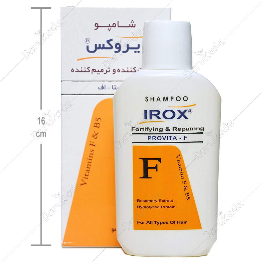شامپو پروویتا-اف ایروکس دارای پایه شوینده ملایمی است که آن را برای انواع مو مناسب می سازد، یعنی موی خشک با یک بار و موهای معمولی تا چرب با دو بار شستشو در هر نوبت استحمام کاملاً تمیز می شوند. در این پایه ترکیب اصلی باز هم آمونیوم آلکیل اتر سولفات ( آنیونیک با خواص آمفوتری) می باشد که به موها نرمی و لطافت خاصی می بخشد. ویتامین F موجود در شامپو با مجموعه سرشاری از اسیدهای چرب ضروری ارزشمند که خواص ضد التهاب قوی و ترمیم کننده دارند، به عنوان یک Growth Promoting Factor با اثر برفولیکول مو موجب شادابی و کمک به رشد مو شده، از خشکی scalp جلوگیری، خشکی و شکنندگی مو جلوگیری می نماید و قدرت ترمیم کنندگی قوی و بازسازی سلول های پوست را دارد .گلیسیرین و د-پانتنول نیز موجب نرمی بیشتر اسکالپ و مو می شوند. پلی کـواترنیوم-10 در دو فرم (جدا و در کمپلکس) ترکیـب ارزشمندی است که علاوه بر نرم کنندگی و حالت دهندگی، در درخشندگی و جلوگیری از موخوره، وزشدن و گره خوردن مو مؤثر است، همچنین موجب ترمیم موهای آسیب دیده و شکننده می شود. عصاره رزماری (اکلیل کوهی) با خواص ضد ریزش (Stimulant) و آنتی باکتریال، عصاره بید کانادایی با خواص ضد ریزش (آنتی هایپر آندروژنیک)، آنتی باکتریال و ضد التهاب و عصاره چای سبز و اکریزانتلیس با خواص ضد التهاب قوی و Anti-Aging نیز به ترمیم مو و Scalp آسیب دیده کمک می کنند. شامپو پرو ویتا-اف حاوی پروتئین هیدرولیز شده است که با جذب آب با درصد بالا روی ساقه مو می تواند به موهای نازک و شکننده حجم داده و در دراز مدت موهای آسیب دیده راترمیم کند. همچنین حاوی ترکیبی سیلیکونی از دایمتیکون است که ضمن کمک به شادابی و حالت پذیری مو، موجب شفافیت و درخشندگی آن ها می گردد. این محصول از ترکیبات پایه : آمونیوم آلکیل اتر سولفات (آنیونیک با خواص آمفوتری)،TEA-لورت سولفات، بتائین، دی اتیل آمین اسیدهای چرب نارگیل کوکونات از پلی کواترنیوم-10، دایمتیکون، پروتئین های هیدرولیز شده به عنوان نرم کننده و حالت دهنده و حجم دهنده از عصاره رزماری (محرک)، عصاره CW (آنتی هیپرآندروژنیک)، روغن جوجوبا، آلانتوئین به عنوان مواد محرک رشد مو، التیام بخش، ضد التهاب از ویتامین های F، دِ-پانتنول و از عصاره چای سبز و عصاره کریزانتلیس به عنوان آنتی اکسیدان استفاده می کند.