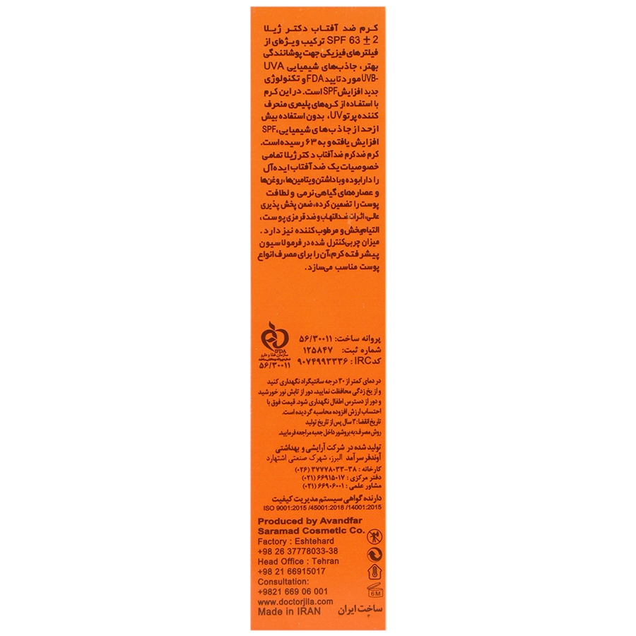 • کرم ضدآفتاب دکتر ژیلا 63%، مناسب برای انواع پوست حتی پوست حساس