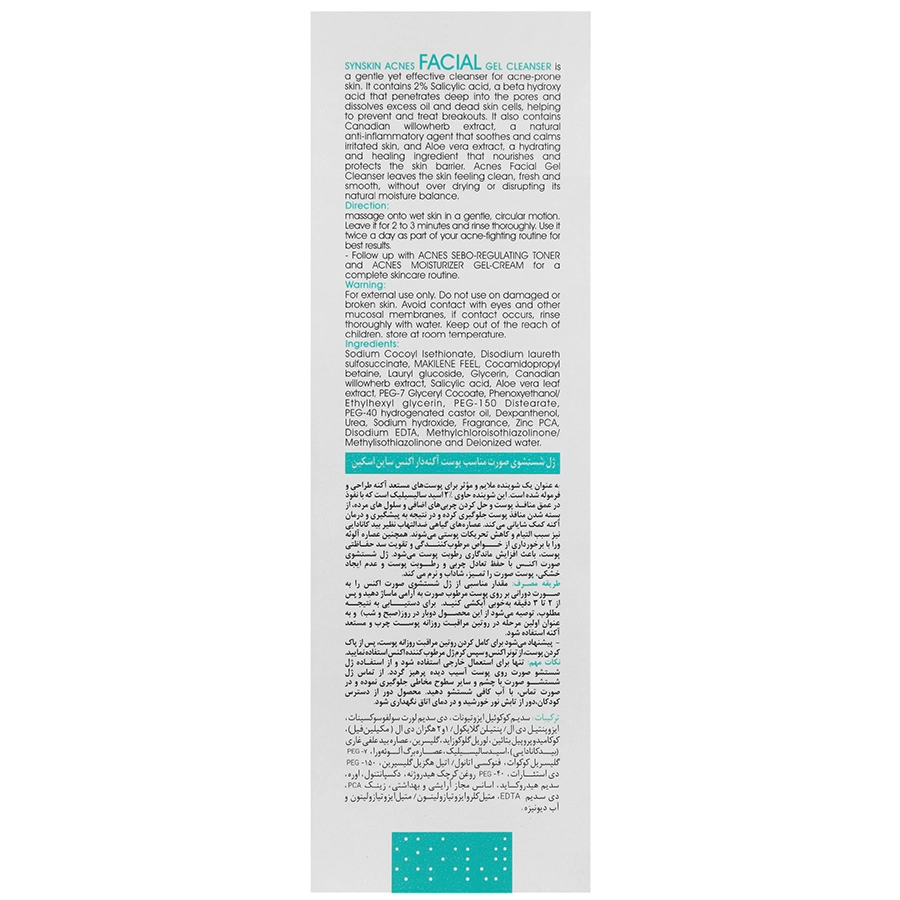 يكى از توصيه هاى كليدى در روتين روزانه مراقبت از پوست، پاكسازى پوست به عنوان اولين مرحله مى باشد. استفاده از يک پاک كننده ملايم جهت شستشوى صورت در روتين روزانه مى تواند نقش مهمى در حفظ سلامت پوست و جلوگيرى از تشكيل كومدون و آكنه داشته باشد. ژل شستشوى صورت مناسب پوست آكنه دار اكنس ساين اسكين به عنوان یک شوينده ملايم و موثر براى پوست هاى مستعد آكنه طراحى و فرموله شده است. اين شوينده حاوى 1% اسيدساليسيليک است، كه با نفوذ در عمق منافذ پوست و حل كردن چربی هاى اضافى و حذف سلول هاى مرده، از بسته شدن منافذ پوست جلوگیرى كرده و در نتيجه به پيشگيرى و درمان آكنه كمک شايانى می کند.
