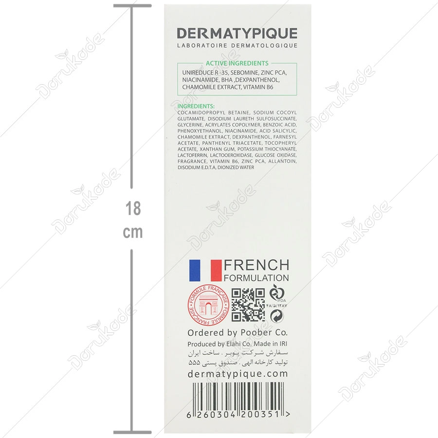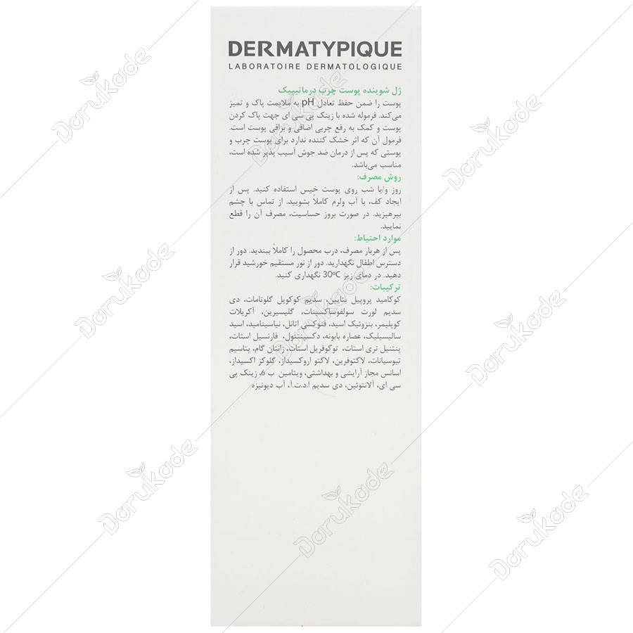 ژل شوینده پوست چرب درماتیپیک، پوست را ضمن حفظ تعادل PH به ملایمت پاک و تمیز می کند. فرموله شده با زینک پی سی ای جهت پاک کردن پوست و کمک به رفع چربی اضافی و براقی پوست است. فرمول آن که اثر خشک کننده ندارد برای پوست چرب و پوستی که از درمان ضد جوش آسیب پذیر شده است، مناسب می باشد.