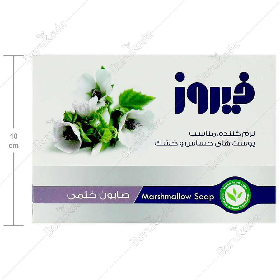 صابون ختمی فیروز با داشتن عصاره ختمی، نرم کننده بوده، التهابات پوستی را کاهش میدهد و التیام بخش است. این صابون همچنین در درمان سوختگی های سطحی و گزیدگی ناشی از نیش حشرات نیز موثر می باشد. روغن نارگیل و موم زنبور عسل موجود در این صابون سبب نرم کنندگی بیشتر پوست و لانولین به کار رفته در آن به حفظ رطوبت پوست کمک می کند.