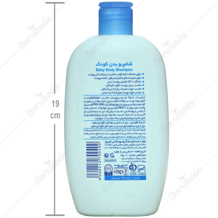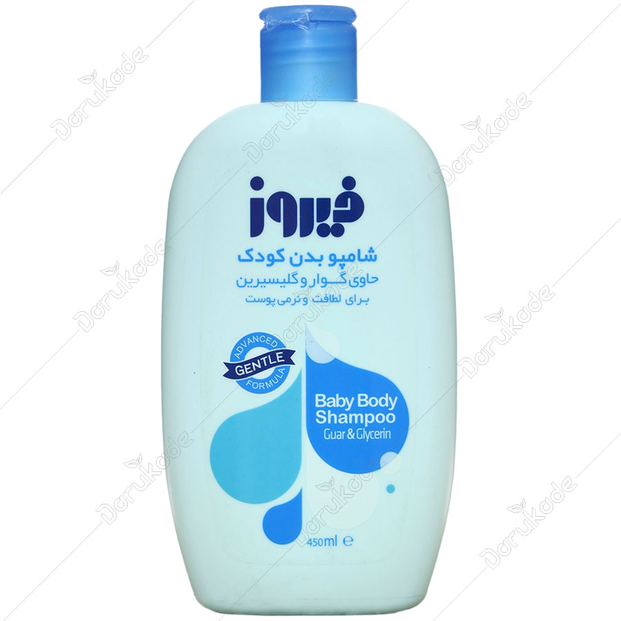 • شامپو بدن کودک فیروز حاوی گوار و گلیسیرین، مناسب پوست‌ خشک و حساس