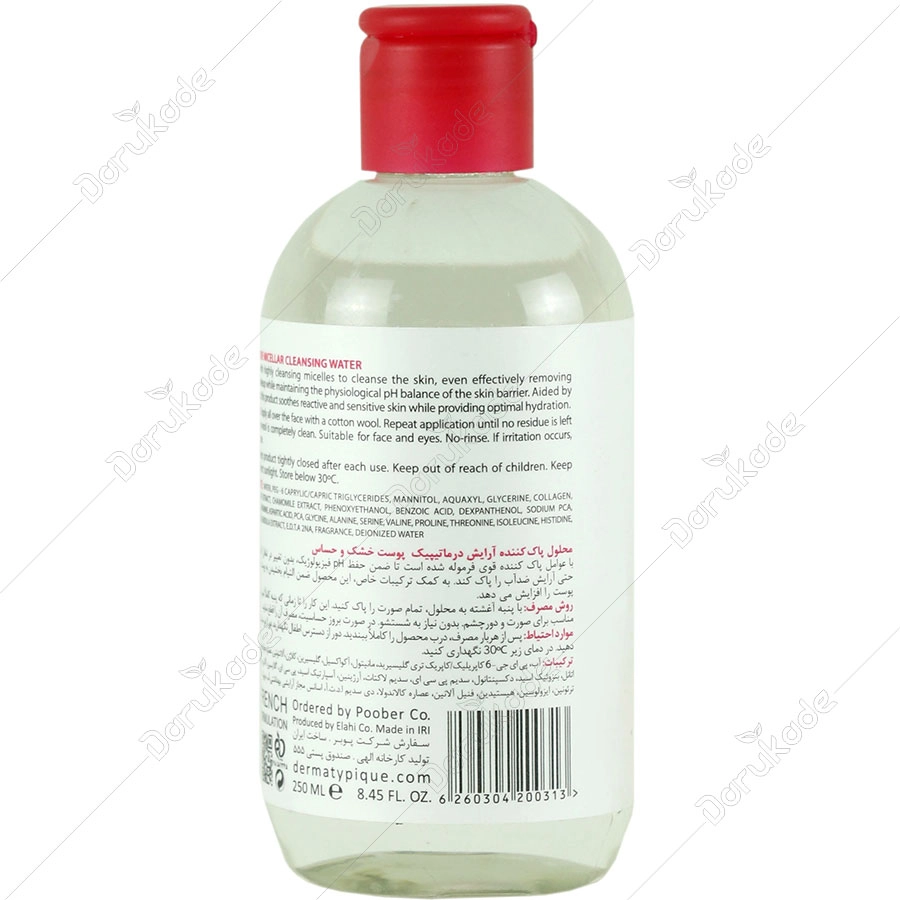 محلول پاک کننده آرایش درماتیپیک پوست خشک و حساس با عوامل پاک کننده قوی فرموله شده است تا ضمن حفظ PH فیزیولوژیک، بدون تغییر در تعادل لایه محافظ پوست حتی آرایش ضد آب را پاک کند. به کمک ترکیبات خاص، این محصول ضمن التیام بخشیدن به پوست حساس، رطوبت پوست را افزایش می دهد.