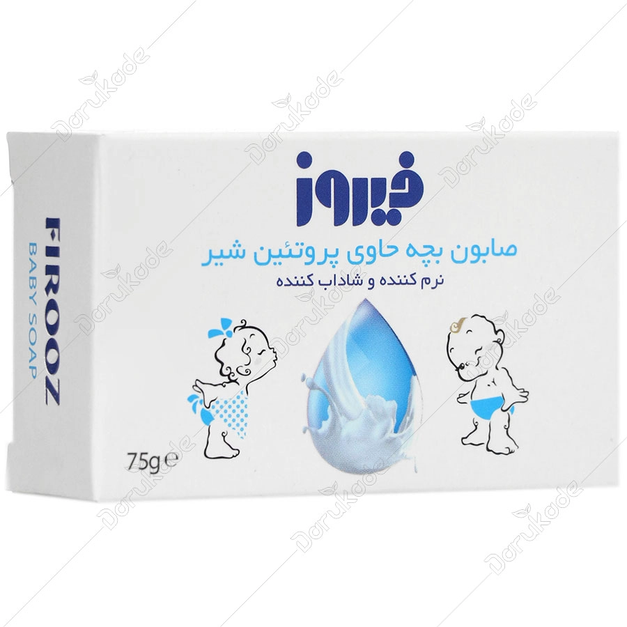 پزشکان توصیه می کنند که به هیچ عنوان از صابون های مخصوص بزرگسالان برای کودکان استفاده نشود. صابون کودکان بسیار ملایم و با PH متناسب با پوست ظریف و حساس شان است. برای شستشوی دست و بدن کودک باید از صابونی استفاده کرد که علاوه بر قدرت تمیز کنندگی خوب، ملایم بوده و چربی طبیعی پوست را از بین نبرد. صابون بچه فیروز حاوی پروتئین شیر، شوینده ملایم با کف کنندگی مناسب برای پوست های لطیف می باشد که پروتئین شیر موجود در این محصول موجب نرم کنندگی و ترمیم کنندگی پوست می شود و همچنین لانولین موجود در این صابون به حفظ رطوبت و نرم کنندگی پوست کمک می کند. صابون بچه فیروز حاوی پروتئین شیر بدون حساسیت و دارای خاصیت روشن کنندگی پوست و مناسب جهت پوست های حساس می باشد. این صابون در بسته بندی 75 گرمی به بازار عرضه شده است و قابل استفاده برای نوزادن، کودکان و بزرگسالان و بدون ایجاد حساسیت می باشد. این صابون برای دست، صورت و بدن قابل استفاده می باشد.