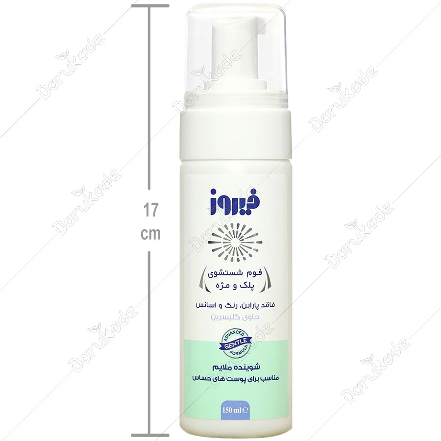فوم شستشو پلک و مژه فیروز، با استفاده از ملایم ترین مواد اولیه تولید می شود. این محصول فاقد رنگ، اسانس و پارابن بوده و استفاده از آن باعث آسیب به چشم و پوست نمی شود.