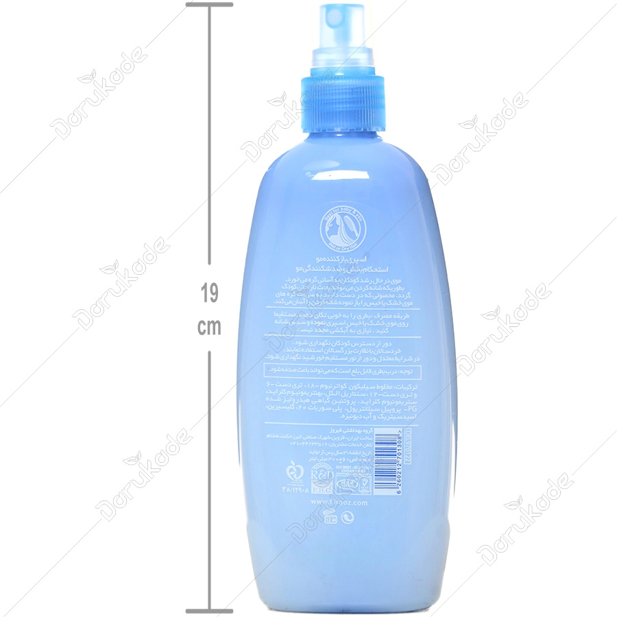 موی در حال رشد کودک کودکان به آسانی گره می خورد. بطوری که شانه کردن می تواند باعث ناراحتی کودک گردد. محصولی که در دست دارید به سرعت گره های موی خشک یا خیس را باز نموده شانه کردن را آسان می کند.
