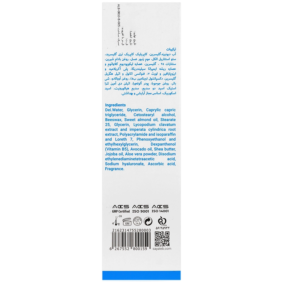 حاوی کمپلکس مرطوب کننده گیاهی (روغن آووکادو، شی باتر، روغن جوجوبا و ویتامین B5)