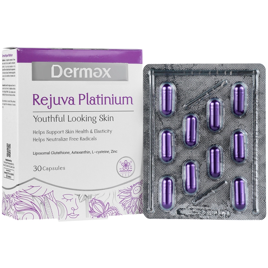 مكمل درمكس رجوا پلاتينيوم تركيب منحصر به فردى از گلوتاتيون ليپوزومال و آستاگزانتين مى باشد. مصرف اين مكمل به محافظت از سلول ها در برابر اكسيداتيو استرس، كاهش چين و چروك و افزايش الاستيسيته پوست كمك مى نمايد، همچنين اين مكمل از طريق كمک به كاهش عملكرد آنزيم تيروزيناز، سبب كاهش لك هاى ناشى از افزيش سن و يكنواخت شدن پوست مى گردد مصرف اين مكمل براى كليه افراد بزرگسال و خصوصا اشخاص بالاى 40 سال توصيه مى گردد.