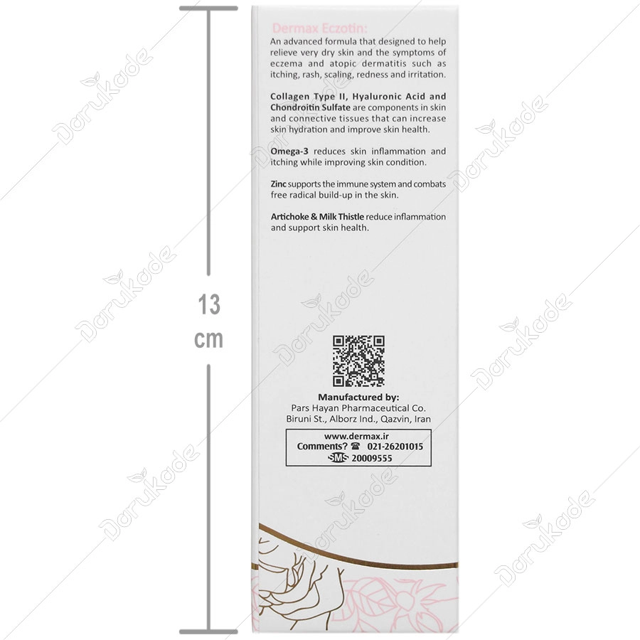 مکمل درمکس اگزوتین، ترکیبی متشکل از مخلوط عصاره های گیاهی، مواد معدنی، اسیدهای چرب امگا-3، کلاژن هیدرولیز شده و هیالورونیک اسید می باشد که در جهت کمک به کاهش علایم ناشی از خشکی پوست تاثیر بسزایی دارد.
