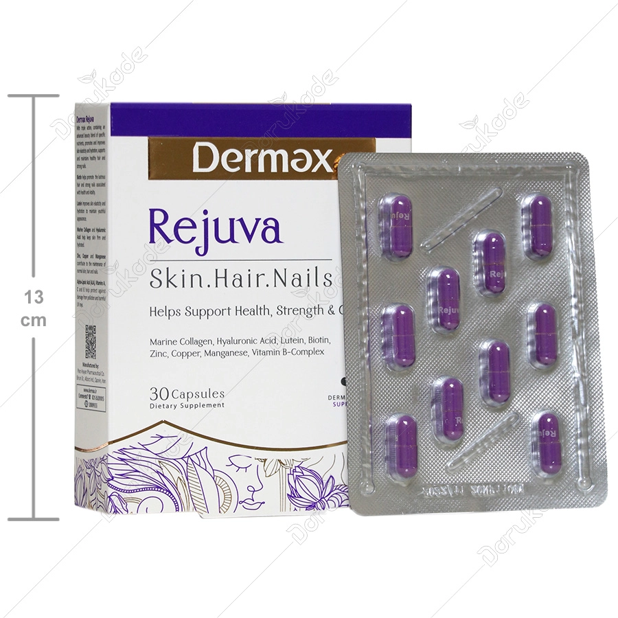 مکمل تغذیه ای درمکس رجوا ترکیبی از مواد طبیعی است که در حفظ سلامت و افزایش شادابی، طراوت و زیبایی پوست، مو و ناخن نقش بسزایی ایفا می نماید.