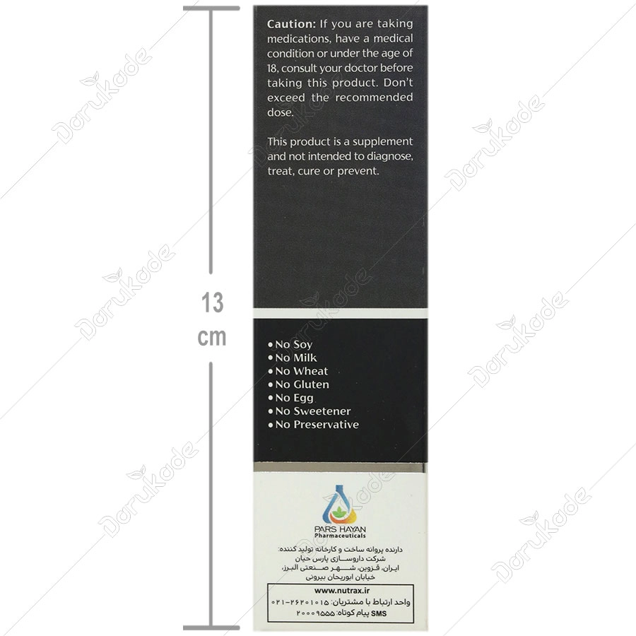 در صورت ادامه یا بدتر شدن عوارض جانبی، مصرف را قطع نموده و با پزشک یا داروساز مشورت نمایید این فرآورده مکمل بوده و جهت تشخیص، درمان و پیشگیری نمی باشد. مطابق دستور پزشک یا داروساز، فرآورده را مصرف نمایید.