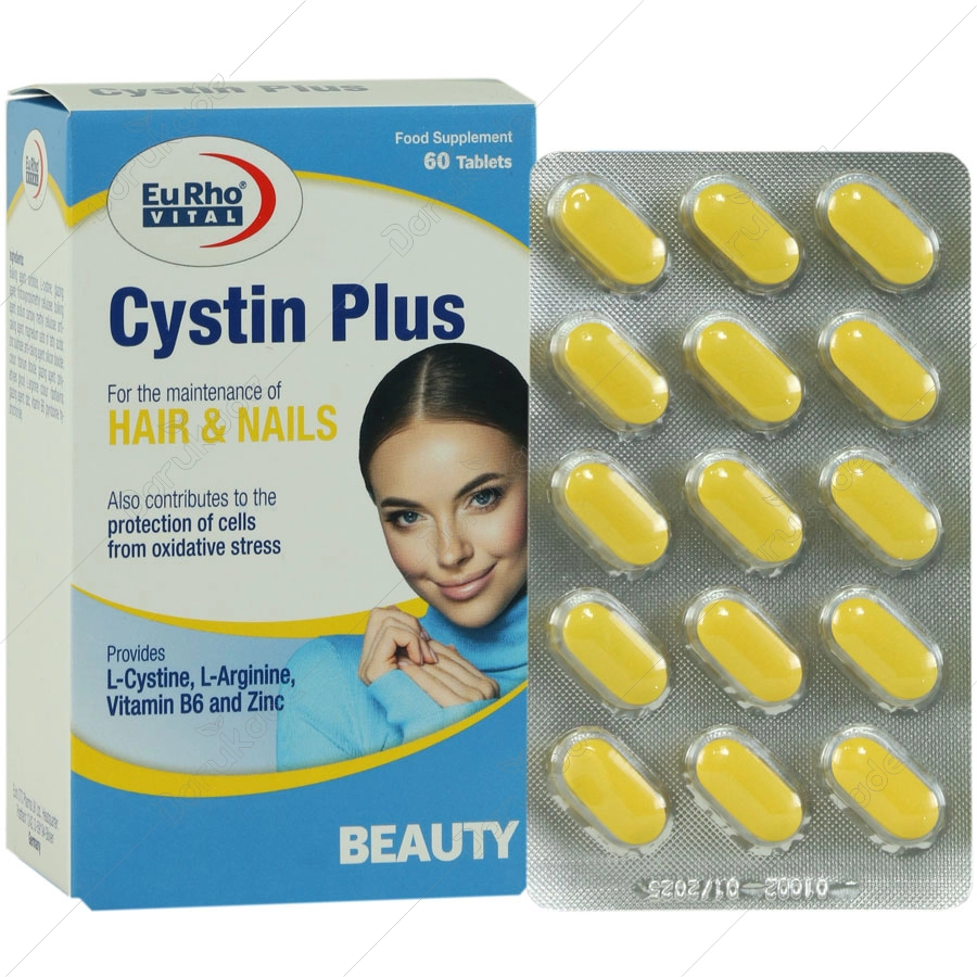سیستین پلاس یوروویتال تامین کننده ترکیبی متعادل از روی، ویتامین B6، ال-سیستئین و ال-آرژینین می باشد.