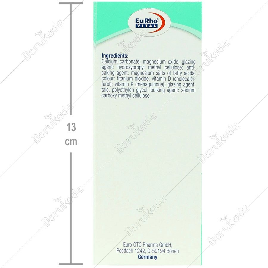 کلسی مگ پلاس D3 و K2 یوروویتال تحت لیسانس کارخانه Euro OTC Pharma GmbH کشور آلمان در هگمتان داروی غرب در ایران تولید شده است و شرکت حکیمان طب کار دارنده پروانه ساخت آن می باشد.