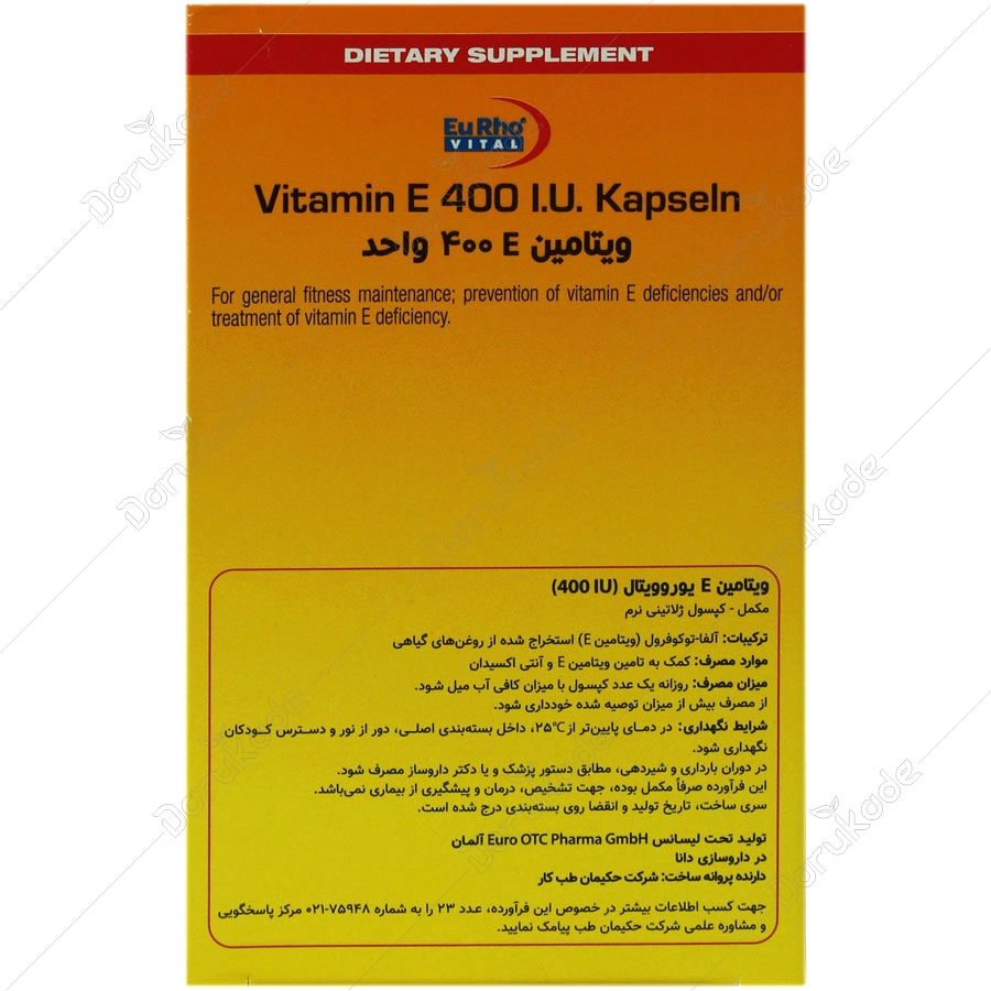 هر کپسول تامین کننده 400 واحد بین المللی (270 میلی گرم) ویتامین E