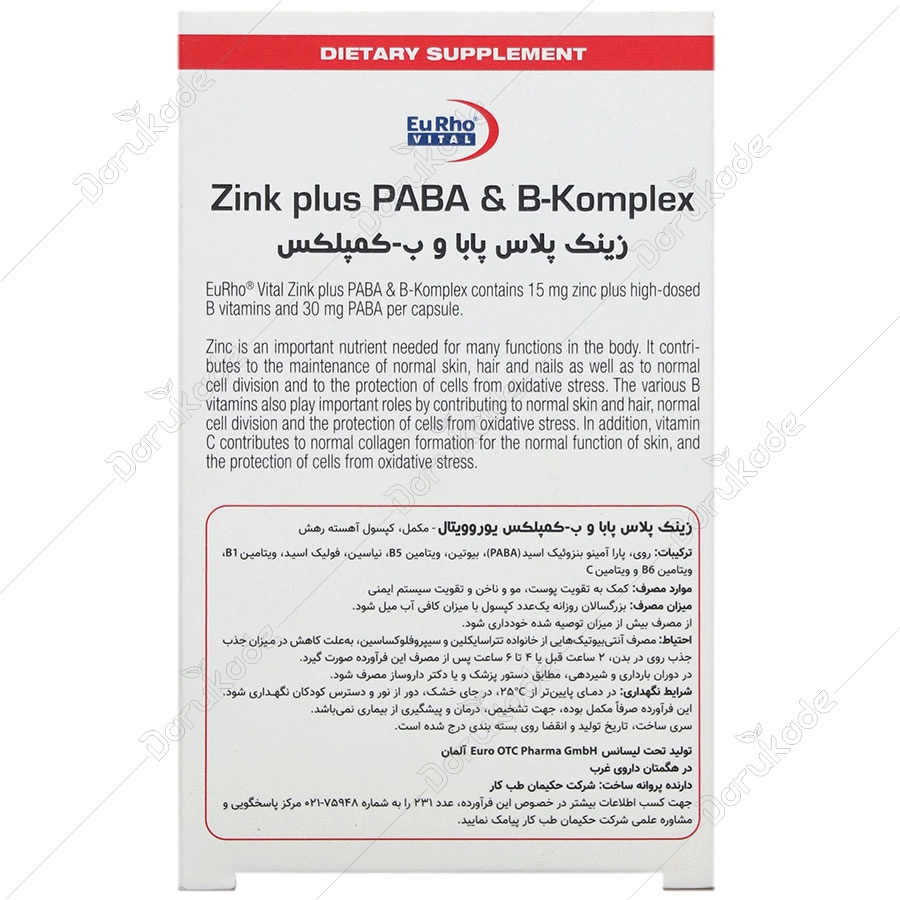 حاوی 15 میلی گرم زینک و 30 میلی گرم پارا آمینو بنزوئیک اسید (PABA)