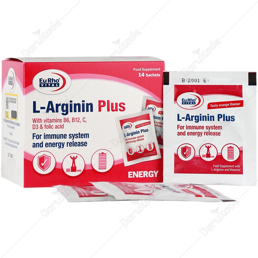 ساشه ال آرژنین پلاس، حاوی آرژنین به همراه ویتامینهای B6، B9، B12، C و D3