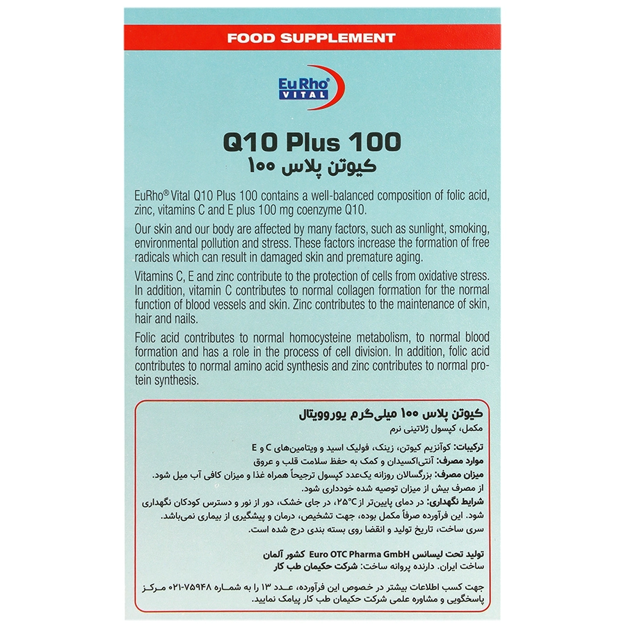 حاوی کوآنزیم کیوتن، روی، فولیک اسید و ویتامین های C و E