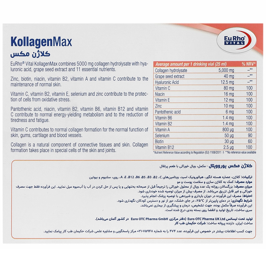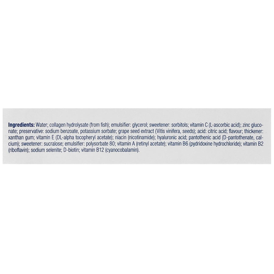 ترکیبات: کلاژن، عصاره هسته انگور، هیالورونیک اسید، ویتامین های C ،B2 ،B3 ،B5 ،B6 ،B12 ،E ،A، روی، سلنیوم و بیوتین