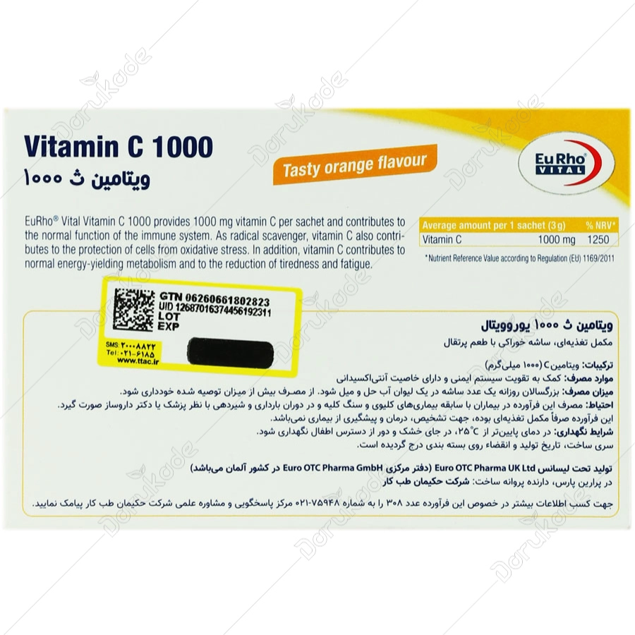 هر ساشه حاوی 1000 میلی گرم ویتامین سی