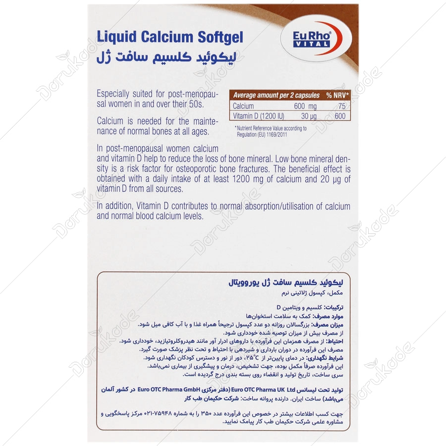 لیکوئید کلسیم یوروویتال، حاوی کلسیم به فرم کلسیم کربنات و ویتامین D3