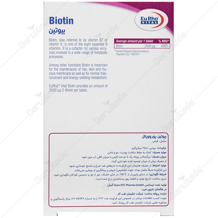 حاوی 2500 میکروگرم بیوتین در هر قرص