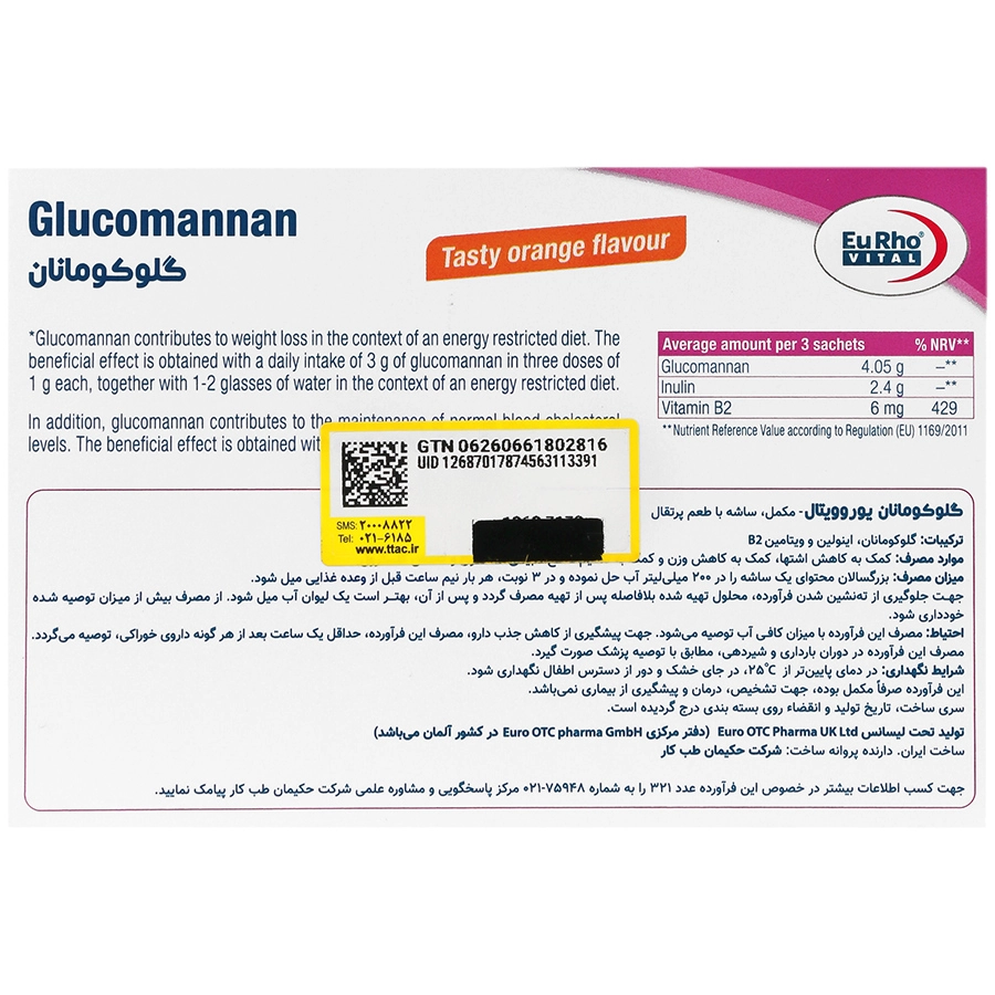 ترکیبات: گلوکومانان، اینولین و ویتامین B2
