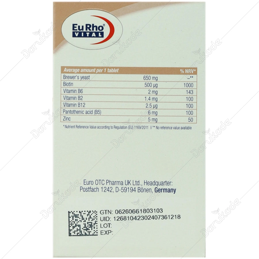 ترکیبات: مخمر آبجو، بیوتین، ویتامین های B2 ،B5 ،B6 ،B12 و روی
