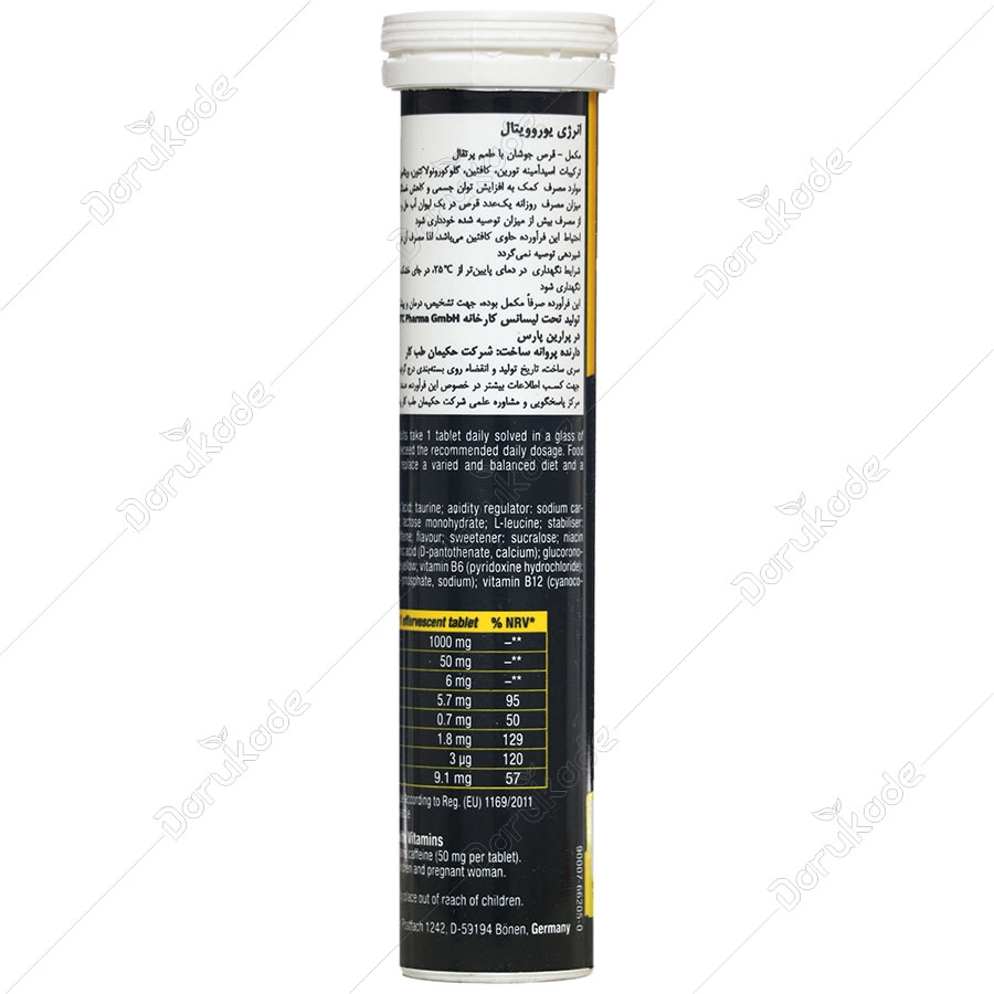 ترکیبات: اسید آمینه تورین، کافئین، گلوکورونولاکتون، ویتامین های B6، B5، B3، B2 و B12
