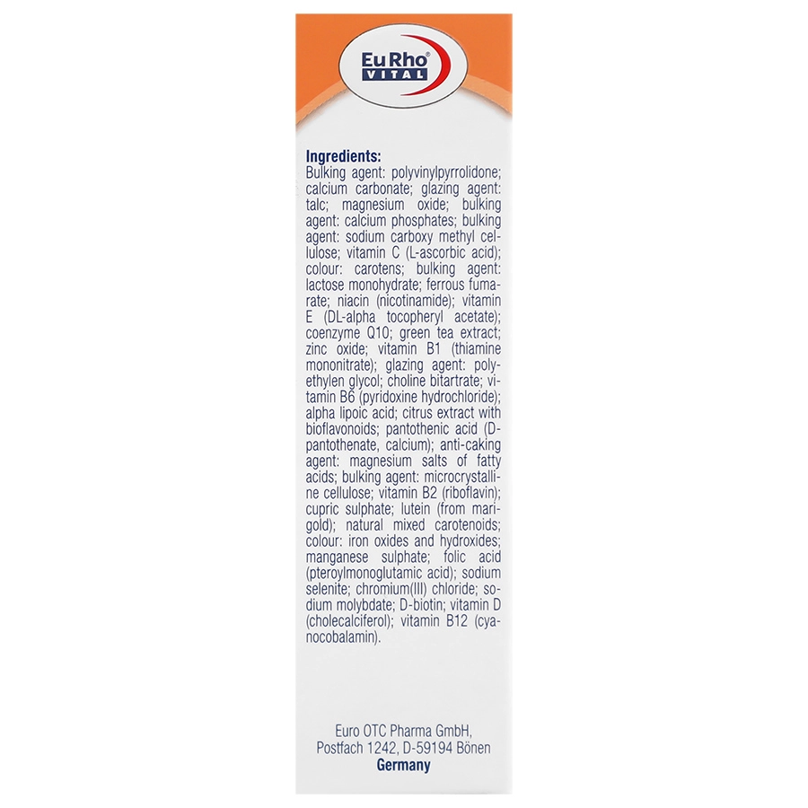 ویتامینهای گروه B ،E ،D3، مواد معدنی مورد نیاز بدن، آلفا لیپوئیک اسید، کاروتنوئیدهای طبیعی، لوتئین، کوآنزیم کیوتن، عصاره چای سبز، اسید آمینه، کولین و بیوفلاونوئید