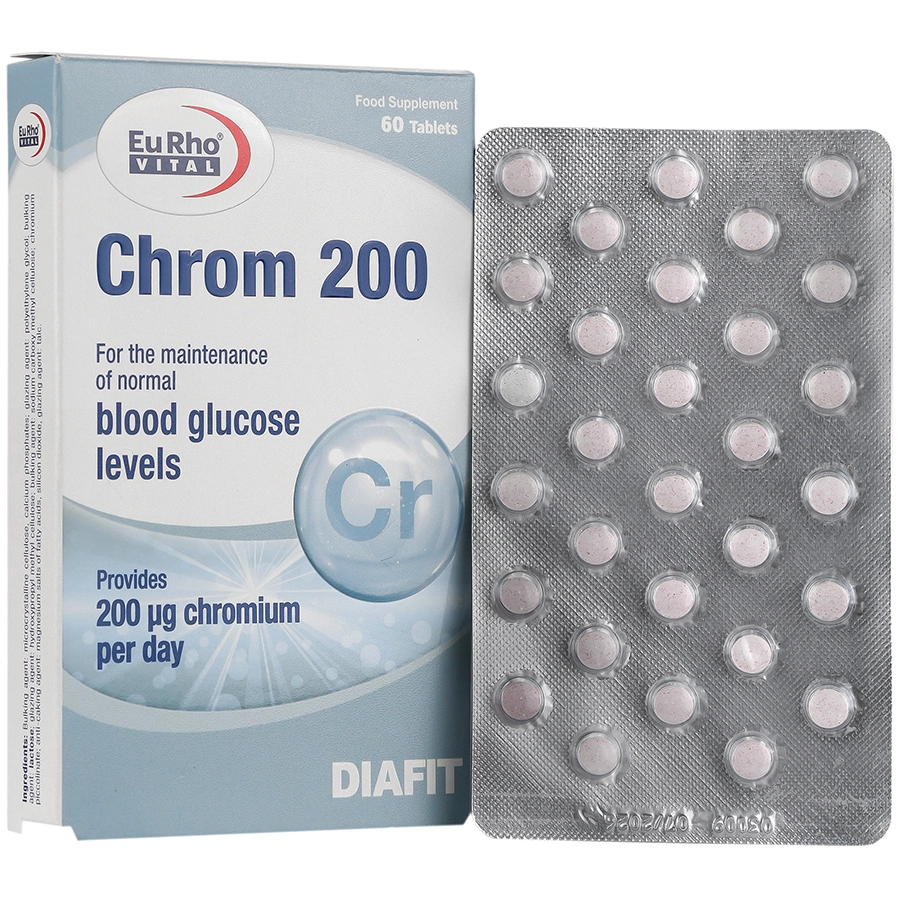 کروم 200 یوروویتال حاوی 200 میکروگرم کرومیوم پیکولینات است که به طور موثری در افزایش میزان جذب کروم موثر می باشد.