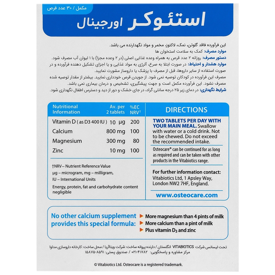 ترکیبات قرص استئوکر ( Osteocare Original )