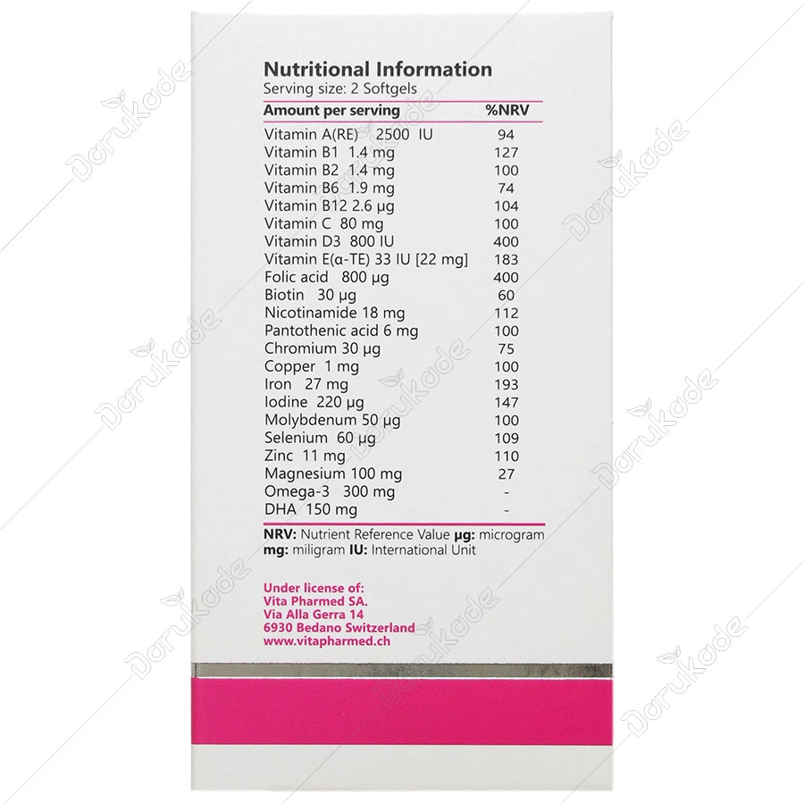 حاوی 800 میکروگرم فولیک اسید جهت کمک به جلوگیری از نقص لوله عصبی در نوزادان