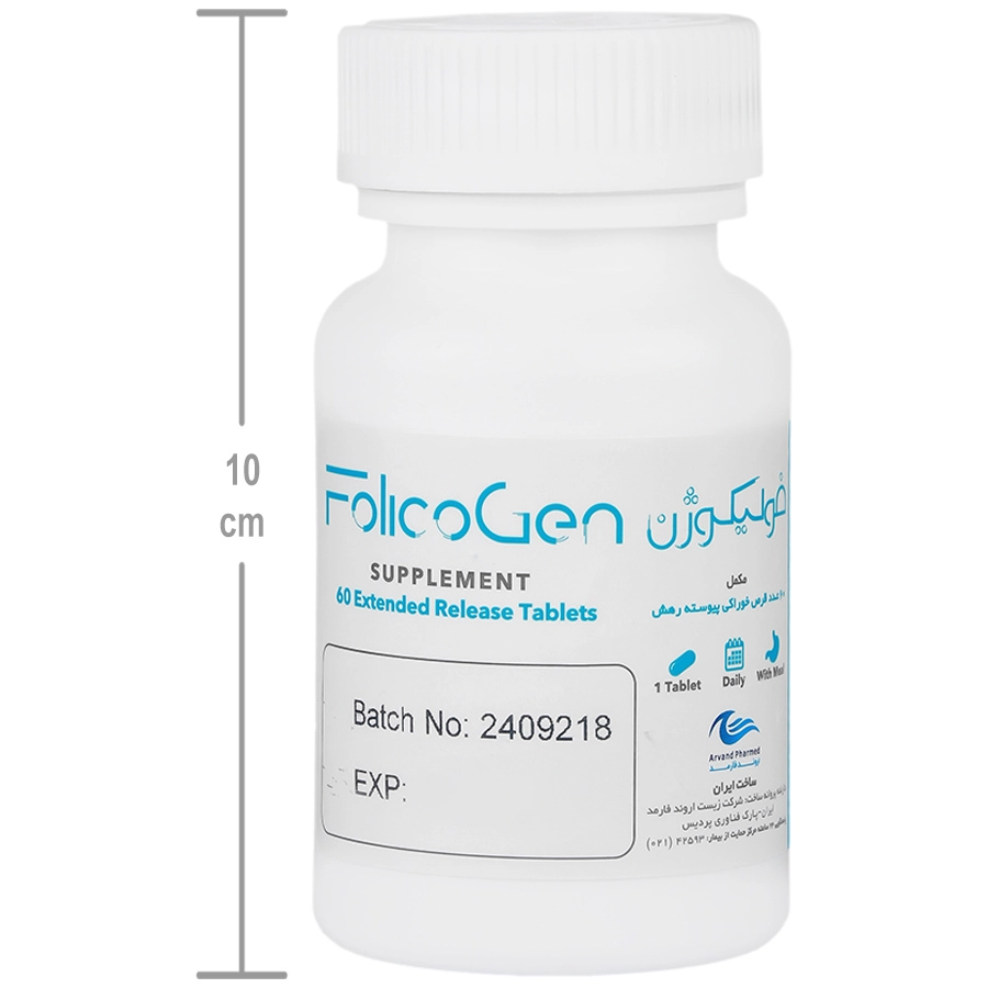 روزانه یک عدد قرص فولیکوژن ترجیحا صبح به همراه یک لیوان آب مصرف شود.