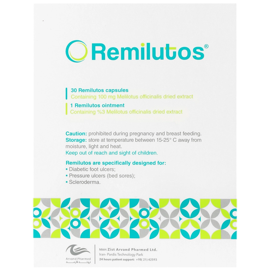 کپسول رمیلوتوس محصولی حاوی 100 میلی گرم عصاره خشک از گیاه Melilotus officinalis و پماد رمیلوتوس محصولی حاوی 3 گرم عصاره خشک از گیاه Melilotus officinalis در هر 100 گرم پماد می باشد که در ترمیم زخم پای دیابتی در بیمارانی که به دلایل مختلف نظیر اختلالات اعصاب محیطی اندام ها، ضربه، سوختگی، اجسام برنده و تیز، استفاده از کفش نامناسب، ناهنجاری و بد شکلی در پا، سابقه زخم یا قطع قسمتی از پا، محدودیت حرکت و ابتلای طولانی مدت به دیابت دچار زخم پای دیابتی شده اند به کار می رود.