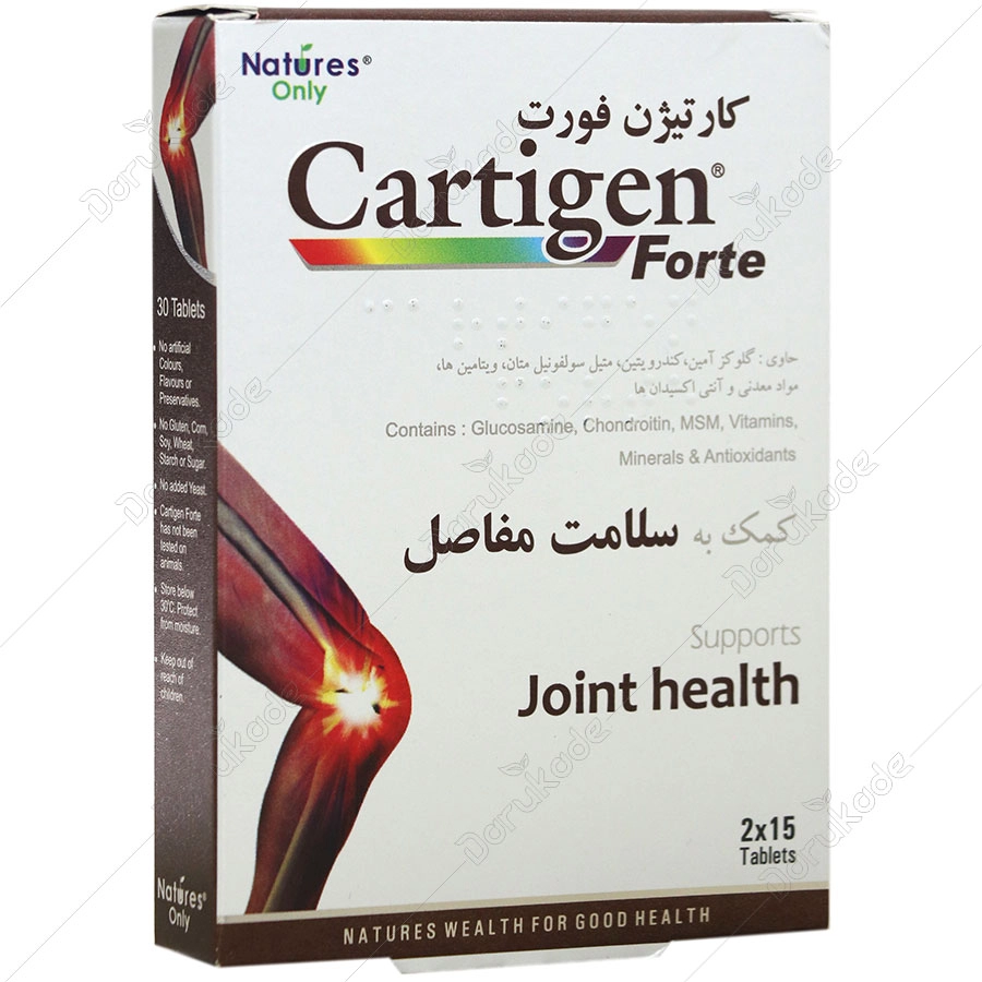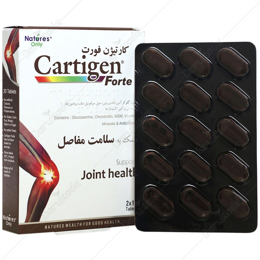 قرص کارتیژن فورت حاوی گلوکزآمین، کندرویتین، متیل سولفونیل متان، ویتامین ها، مواد معدنی و آنتی اکسیدان ها