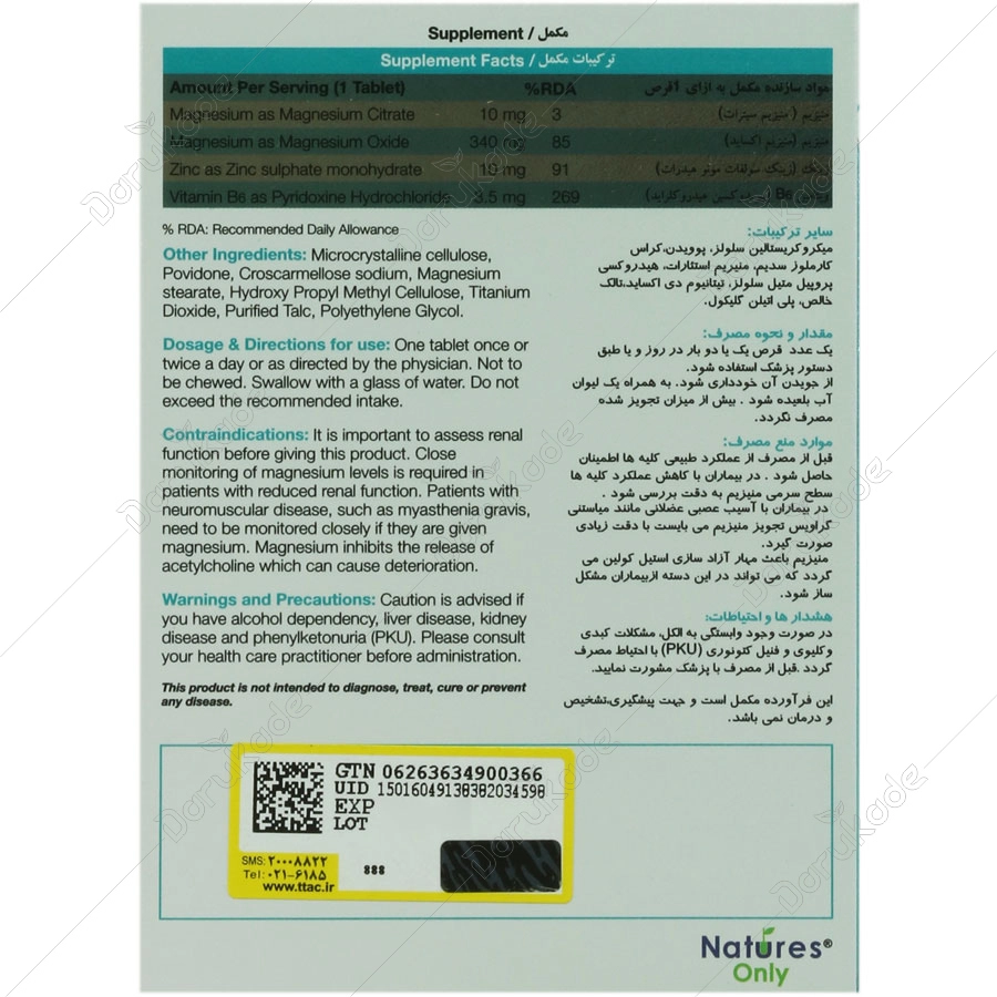 | منیزیم ( منیزیم اکساید ) | 340 mg |