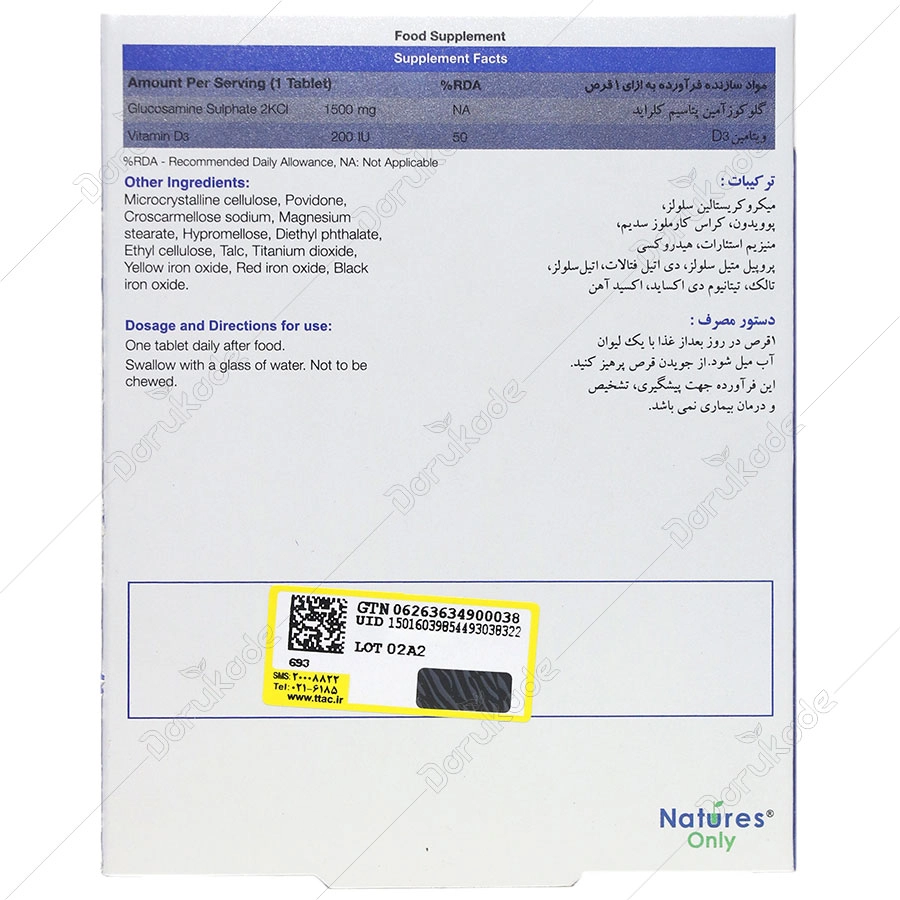 | Glocosamine Sulphate 2KCL(گلوکزآمین پتاسیم کلراید) | 1500 mg |