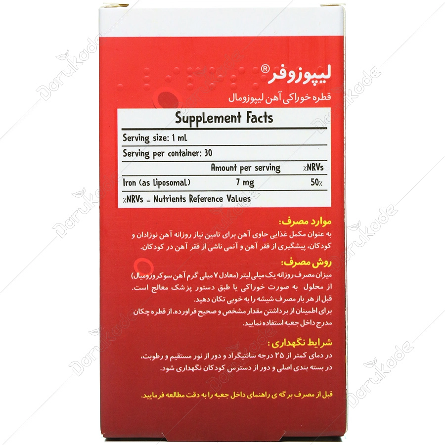 عوارض جانبی: قطره آهن لیپوزوفر به این علت که یون های آهن آن درون ساختار لیپوزومی حبس شده اند و در تماس مستقیم با مخاط دستگاه گوارشی قرار نمی گیرند، عوارض جانبی معمول سایر قطره های آهن را ندارد ولی مصرف طولانی مدت آهن با دوز بالا می تواند منجر به مسمومیت با آهن شود.