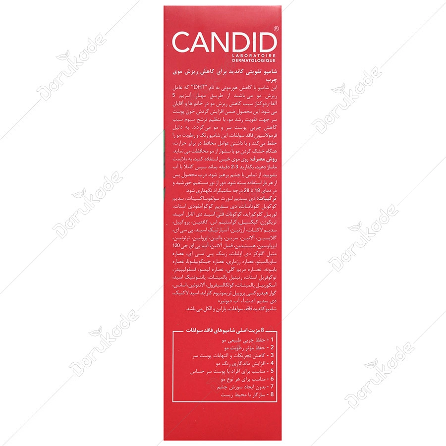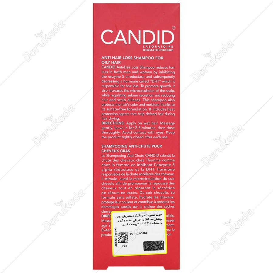 شامپو تقویتی کاندید برای کاهش ریزش موی چرب: این شامپو با کاهش هورمونی به نام DHT که عامل ریزش مو می باشد، از طریق مهار آنزیم 5 آلفا-ردوکتاز سبب کاهش ریزش مو در خانم ها و آقایان می شود. این محصول ضمن افزایش گردش خون پوست سر جهت تقویت رشد مو، با تنظیم ترشح سبوم سبب کاهش چربی پوست سر و مو می گردد. به دلیل فرمولاسیون فاقد سولفات، این شامپو رنگ و رطوبت مو را حفظ می کند و با داشتن عوامل محافظ در برابر حرارت، هنگام خشک کردن مو با سشوار از مو محافظت می نماید.
