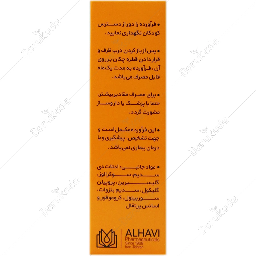 پس از باز کردن درب ظرف و قرار دادن قطره چکان بر روی آن، فراورده به مدت یک ماه قابل مصرف می باشد.