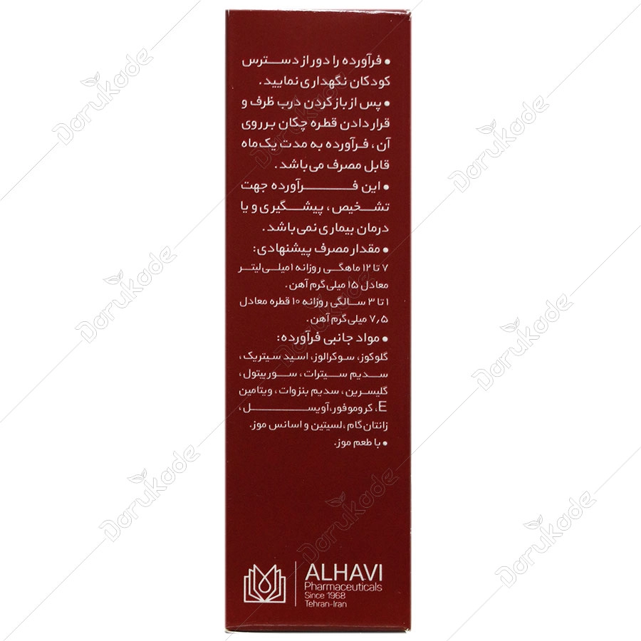 فرآورده به صورت سوسپانسیون در شکل دارویی قطره خوراکی با طعم موز حاوی 46.8 میلی گرم فروس فومارات در هر میلی لیتر معادل 15 میلی گرم آهن می باشد.
