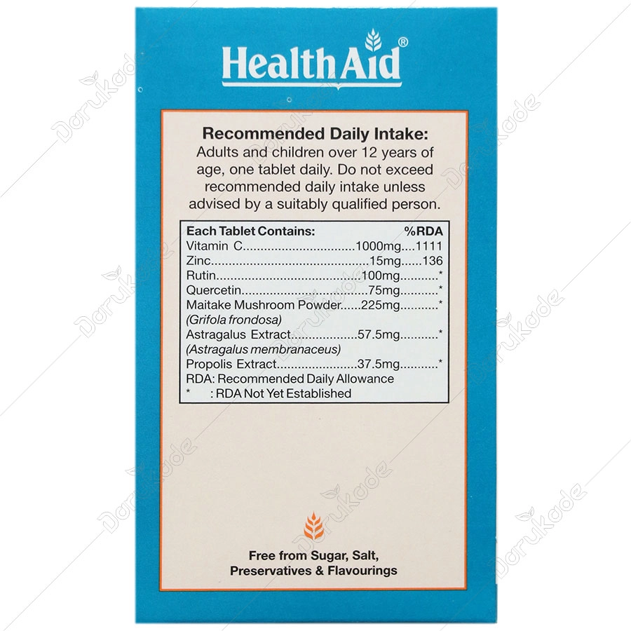 حاوی ویتامین ث، روی، روتین، کوئرستین، قارچ مایتاکه و عصاره های گون و پروپولیس