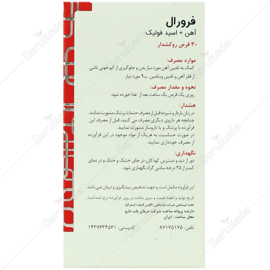 کم خونی بر روی عملکرد ورزشکاران و کارکرد فیزیکی بدن آنها نیز تاثیر منفی دارد. از عوارض دیگر کم خونی ریزش مو و شکنندگی ناخن ها می باشد. ملح آهن موجود در محصول فرورال، فروس فومارات است که دارای بهترین جذب و کمترین عوارض گوارشی می باشد. اسید فولیک یا ویتامین B9 در فرآیندهای مهم بدن شامل سنتز مواد ژنتیکی بدن و پروتئین ها شرکت می کند. کمبود این ویتامین منجر به نوعی کم خونی، موسوم به کم خونی مگالوبلاستیک می شود که با بزرگ شدن سایز و حجم سلول ها قابل تشخیص است و باعث ضعف و خستگی و نفس های کوتاه می شود. مصرف روزانه 400 میکروگرم اسید فولیک برای تمام زنان در سنین باروری جهت کاهش احتمال نقص در سیستم عصبی جنین نیز ضرورت دارد.