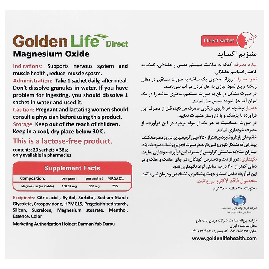 | منیزیم ( منیزیم اکساید ) | 300 mg |