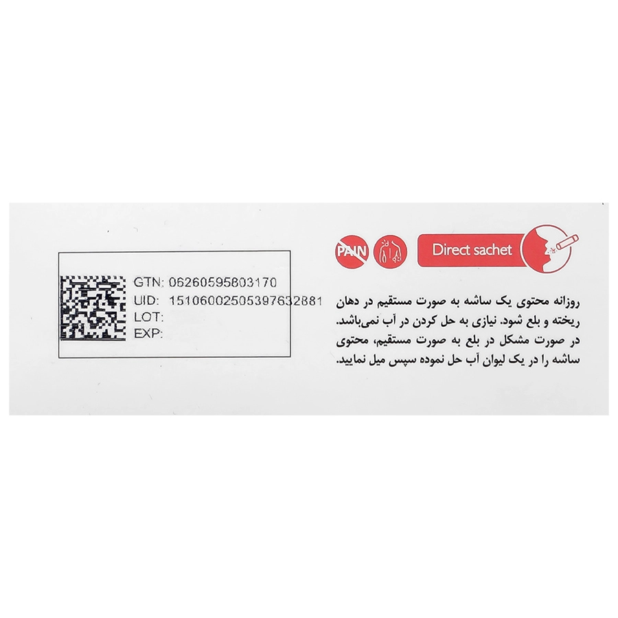روزانه محتوی یک ساشه به صورت مستقیم در دهان ریخته و بلع شود.