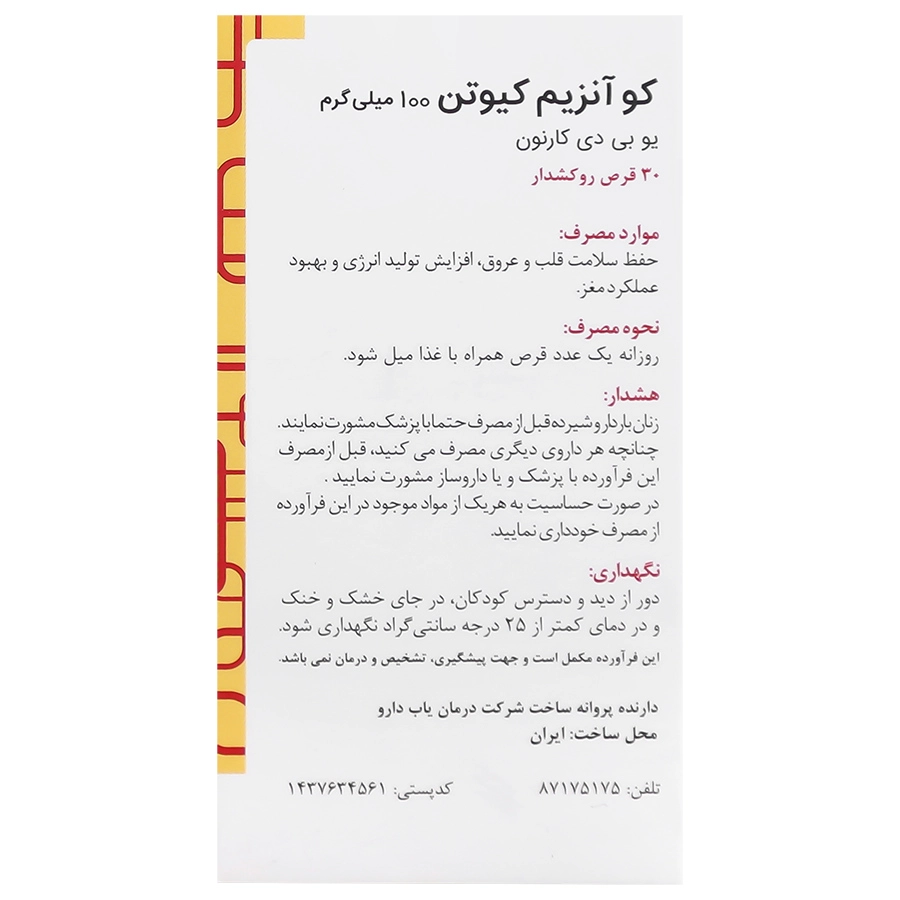 حاوی 100 میلی گرم کوآنزیم کیوتن در هر قرص