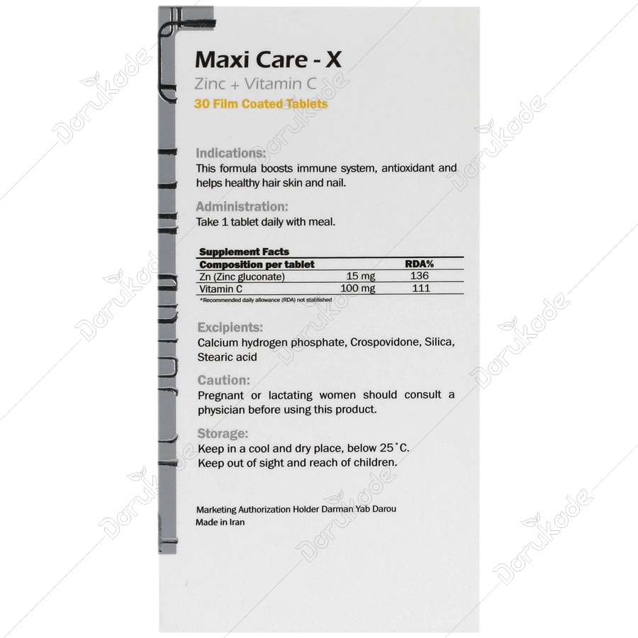 | زینک ( زینک گلوکونات ) | 15 mg |
