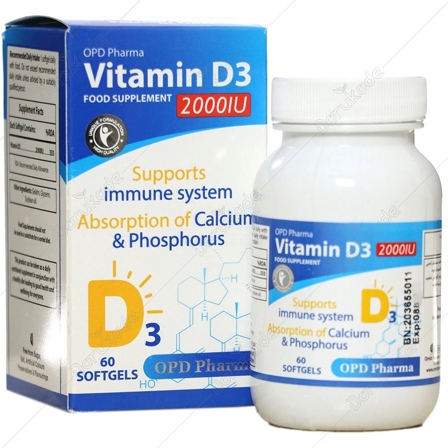 ویتامین د3 او پی دی فارما 2000 واحدی ( 30 عددی )
