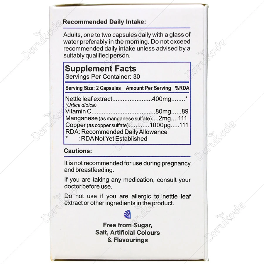 حاوی عصاره برگ گزنه، ویتامین C، منگنز و مس